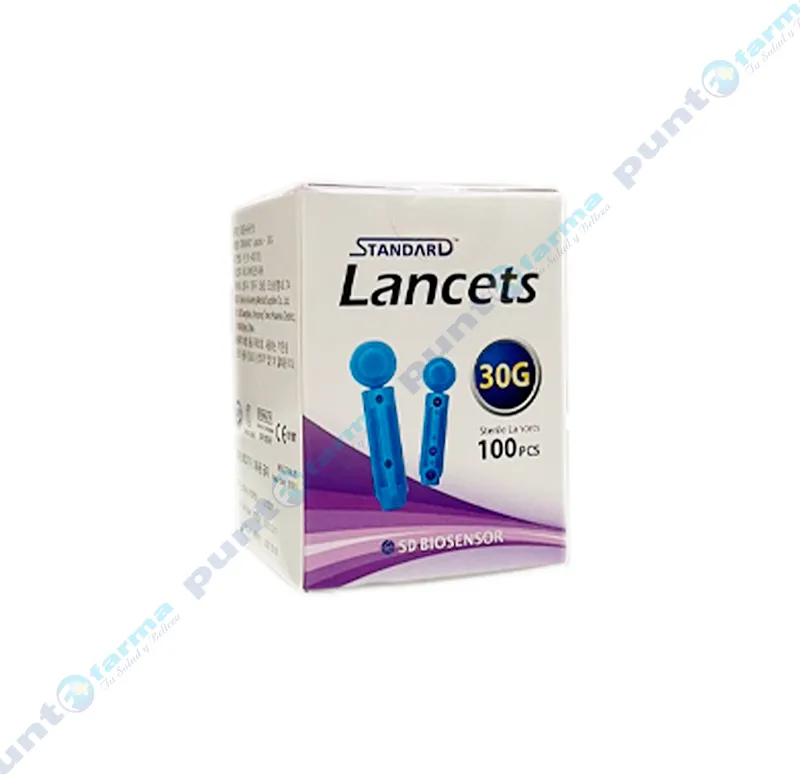 Una lanceta de sangre es similar a un bisturí pequeño pero con una cuchilla o aguja de doble filo . Las lancetas se usan para hacer punciones, como una punción digital, para obtener pequeñas muestras de sangre. Las lancetas de sangre son generalmente desechables. Las lancetas también se usan para pinchar la piel en las pruebas cutáneas para detectar alergias