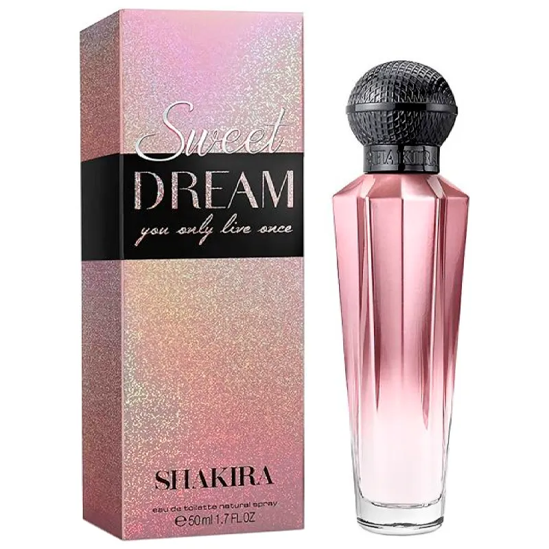 Este perfume del 2019 corresponde a la primera variante que se crea dentro de la marca de la cantante Shakira para la fragancia Dream lanzada en el 2018, con Sweet Dream siguiendo con la temática de destacar el sueño de la artista de volverse una cantante consolidada planteando una variante aromática más frutal y roja. El envase se apega al diseño de botella cilíndrico alargado con un perfil superior con forma de estrella y tapón similar a un micrófono creado para Dream, cambiando el colorido del vidrio del frasco que pasa a rosado y el tapón que cambia de dorado a gris. En el sitio de Shakira Beauty no aparecen menciones a este lanzamiento, sin que se cuente con un listado oficial de sus notas.