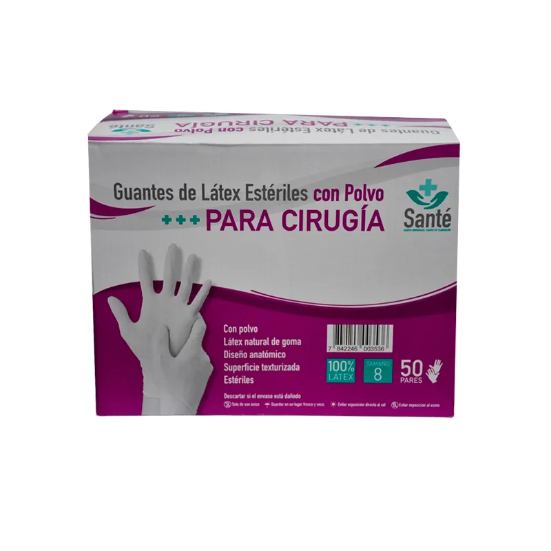Guantes de Latex Esteriles con Polvo Tamaño 8 Sante - Cont.50 pares