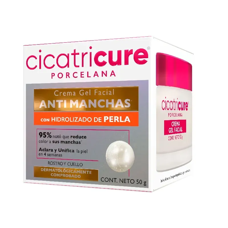 Cicatricure Porcelana crema gel facial es una crema facial anti-manchas dermatológicamente comprobada y con textura no grasa que combina el poder la niacinamida y el hidrolizado de perla para una piel más clara y con menos manchas en 4 semanas.