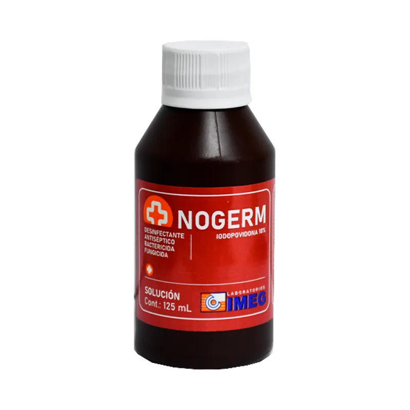 Nogerm es una Solución de uso externo cuyo principio activo es la Iodopovidona (también conocida como Povidona Yodada) al 10%. Es un antiséptico de amplio espectro, clasificado como un agente microbicida de uso tópico.