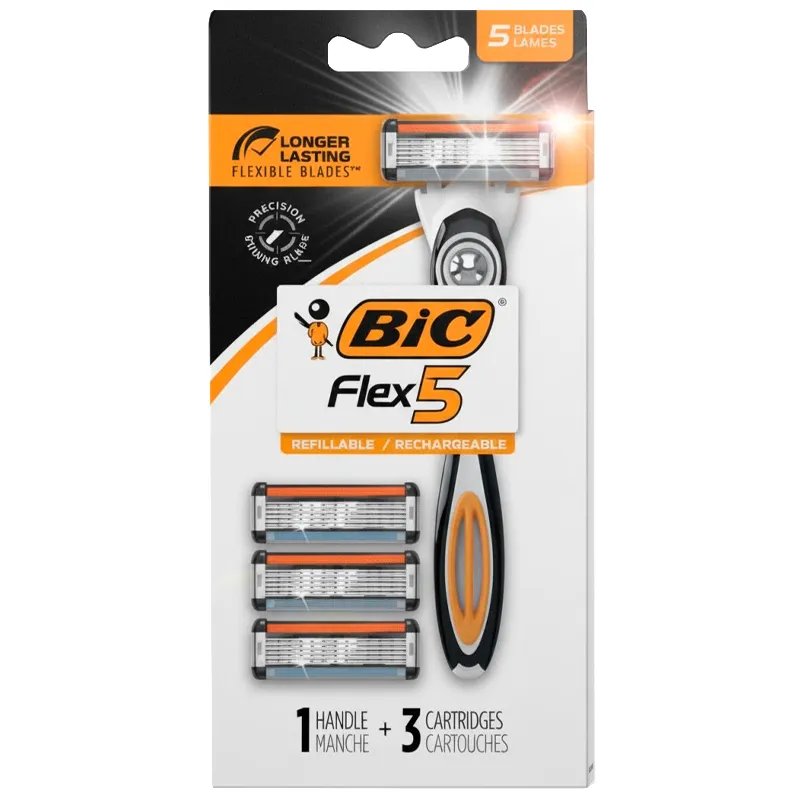 Este producto es un sistema de afeitado para hombres de la marca BIC, modelo Flex 5 Recargable.