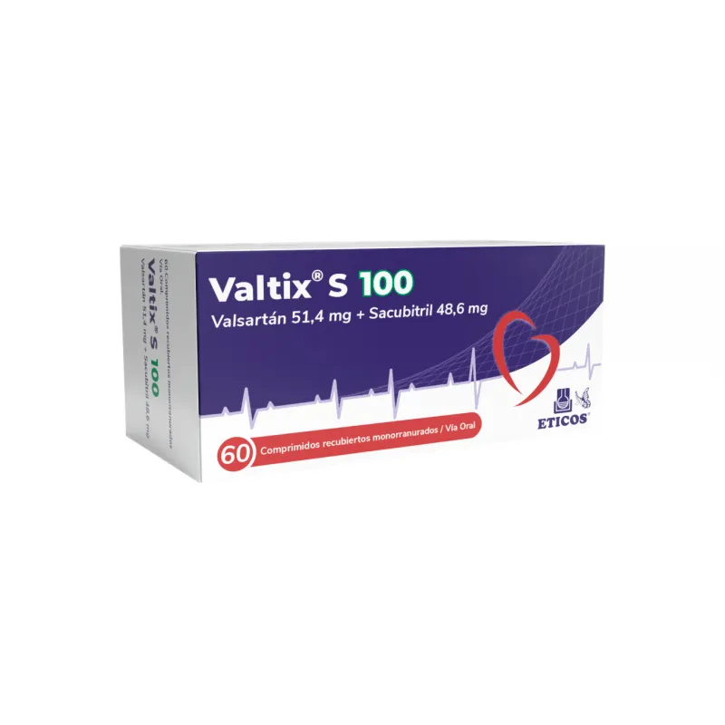 Valtix S 100 mg Valsartan 51,4 mg Sacubitril 48,6 mg - Cont. 60 Comprimidos