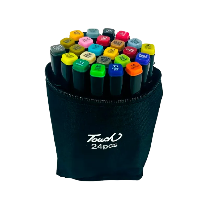 Pinceles doble punta colores surtidos x 24 pcs en estuche negro