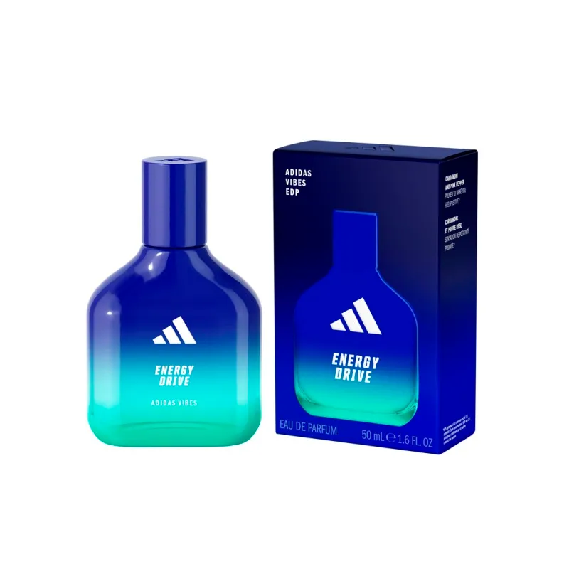 ¡Elige cómo vibrar con las nuevas fragancias de adidas! Energy Drive Eau de Parfum te hace despertar emociones positivas. Potente y luminosa, te da esa explosión de energía imparable, cuando nada te puede detener. Con cardamomo y pimienta rosa. Esta fragancia de larga duración, con aceites esenciales naturales de naranja y pimienta rosa, tiene una fórmula vegana y está dermatológicamente probada. El empaque está hecho con materiales reciclados. Descubre la colección completa de fragancias Vibes: 6 fragancias para cada estado de ánimo.