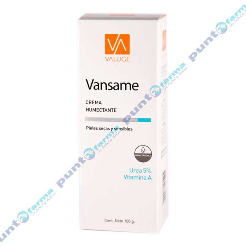 Vansame Crema hidratante contiene Urea 5% y Vitamina A. Vansame es una crema humectante, especialmente desarrollada para aplicar en pieles secas y sensibles. Vansame favorece la retención de la humedad, permitiendo restaurar y/o mantener la hidratación normal de la piel. Vansame se absorbe con rapidez, sin dejar residuos grasos, provocando una perceptible sensación de suavidad en la piel. No contiene lanolina ni sus derivados. Triple acción: regeneradora, antioxidante e hidratante de la piel.
